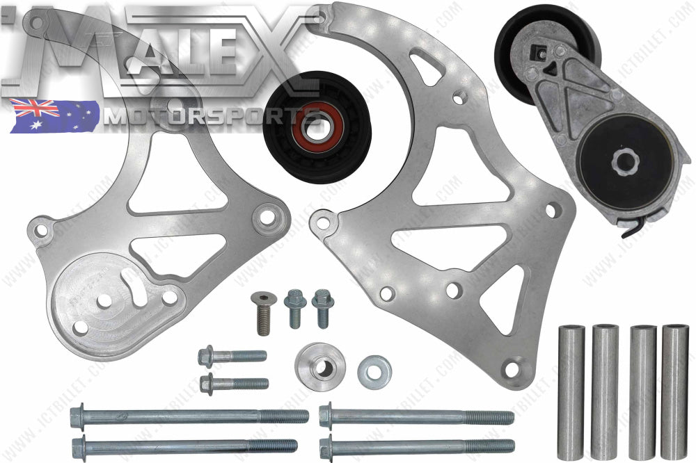 *This bracket does NOT fit or use the factory LS vehicle a/c compressors *Manual belt tensioners are available separately or can be requested instead of the automatic tensioner - Part# 551479