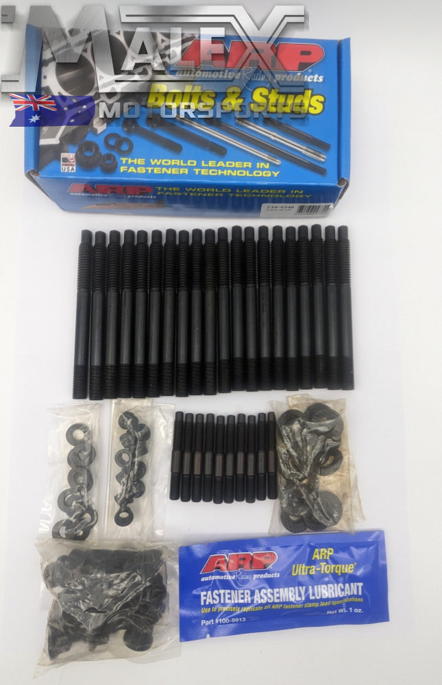 Part No. 234-4346 - Includes a set of twenty ARP2000 M11 head studs, ten M8 studs, thirty parallel ground washers, thirty 8740 chrome moly point nuts and a 1 oz. pack of ARP Ultra-Torque Fastener Assembly Lubricant.