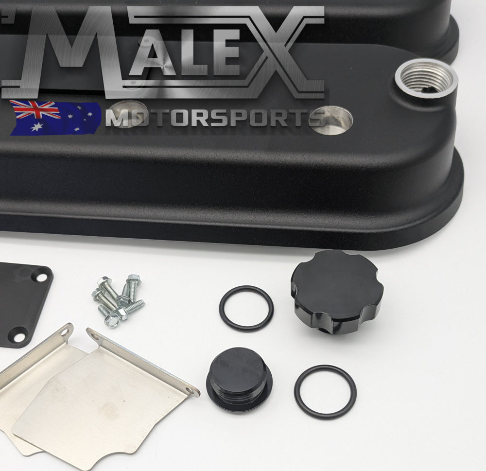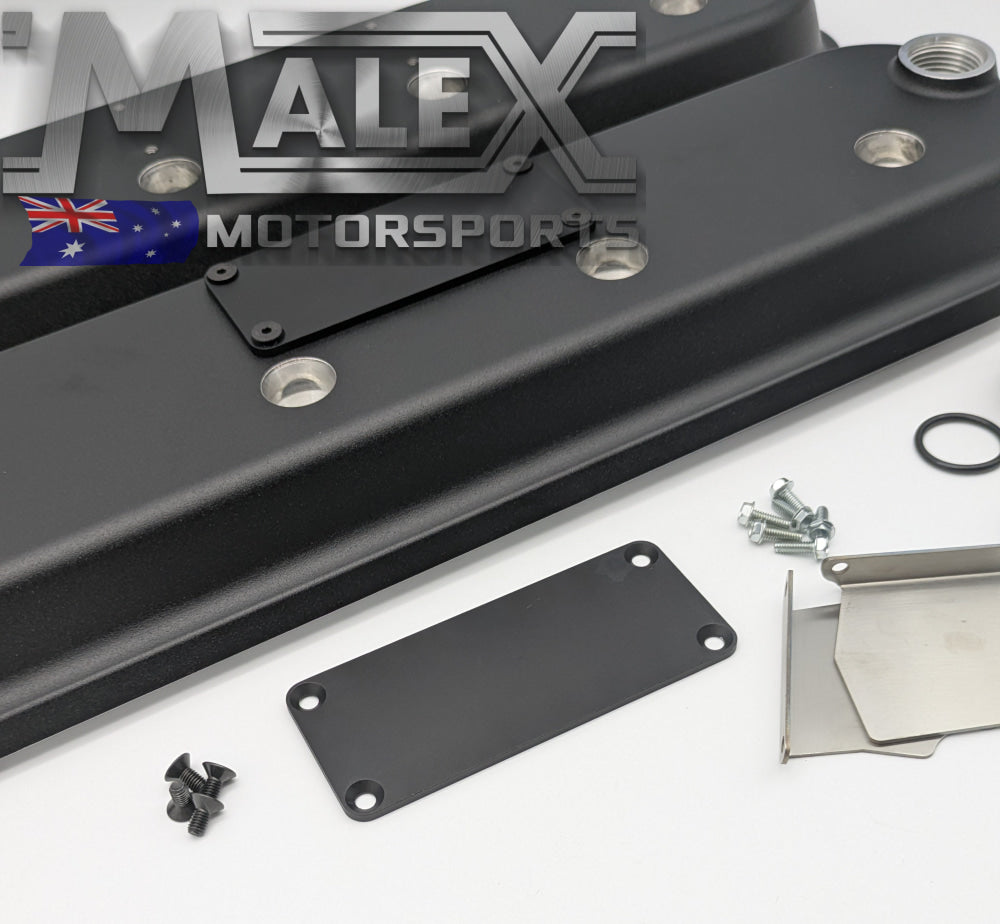 With -12AN ORB vents on both ends, you have a wide variety of options for catch can or vacuum pump plumbing. Also featured is a unique baffle design/splash guard that protrudes below the valve cover surface. Die cast aluminum and available in 3 colors - silver, black, red - with and without coil mounts.