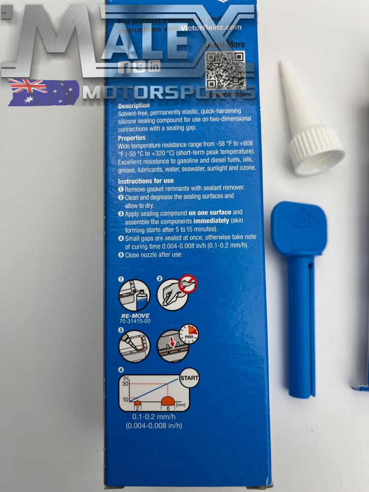 Victor Reinz® Reinzosil® is a permanently elastic, universal silicone sealing compound with excellent resistance to fluids and extreme temperatures. Its durability, flexibility, and versatility make it a favorite among import car specialists. Reinzosil will not shrink or lose weight in high-heat environments, unlike competitor products—which may incorporate plasticizers of minor quality such as calcium carbonate or limestone. With superior resistance under load, even at high temperatures, Reinzosil is a one tube solution for many sealing needs.