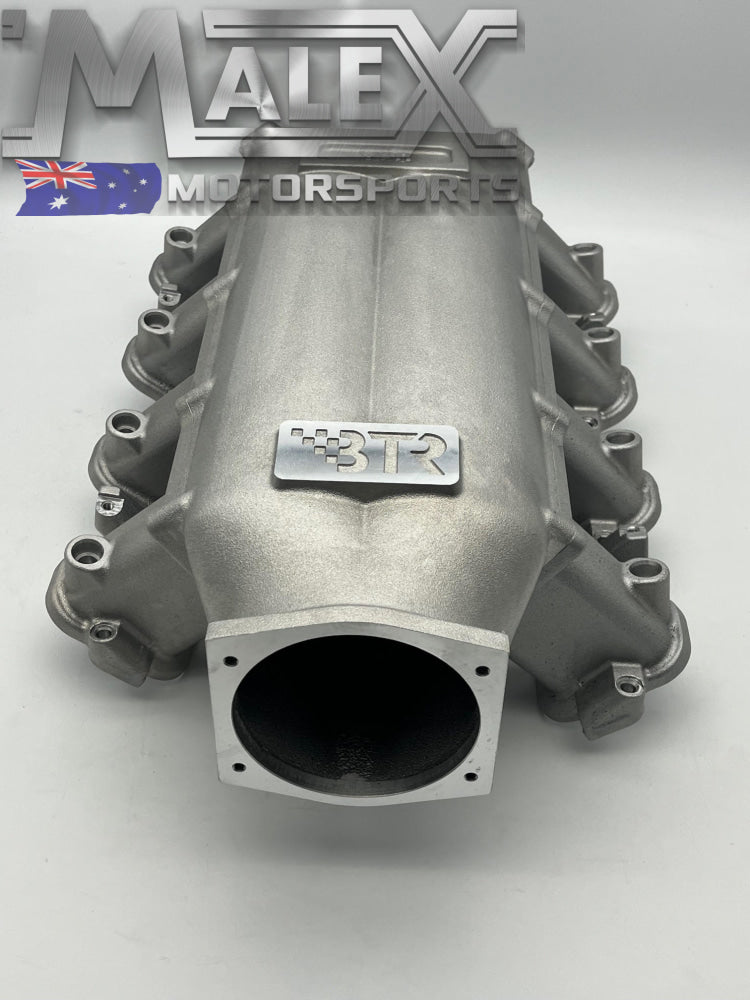 The latest offering from BTR in high quality cast aluminium intake manifolds! TheTRInity is short runner, 3-piece design that allows for the ultimate in application flexibility. It is similar in concept to billet Intakes costing thousands more. Optimum operating range is 6000-8500 rpm and is primarily intended to bridge the gap between N/A and Boosted applications. It will accept DBW or cabled throttle bodies*, but yet it will fit in the tight confines of the C7, C6, C5 Corvette as well as the popular F-body platforms. The design incorporates 2 runners and an interchangeable plenum. The seal is generated by 8 entrapped o’rings at the runner/plenum interface, and is clamped by 20 -M6 Stainless steel socket head cap screws. The port seals are achieved SAE o’rings seated in a dovetailed o’ring groove. Both the port mouth radius and the port match is CNC machined. The TRInity incorporates 2-1/4 -27 NPT ports on the side of the throttle body boss and a 3/8-18” NPT on the rear. The manifold is available in Black Satin Texture powder coat. The manifold comes semi-assembled and includes all the hardware required to bolt it on. Runners and plenums can be purchased separately.