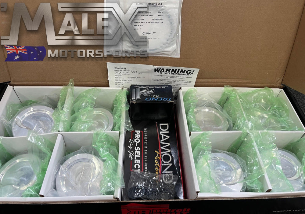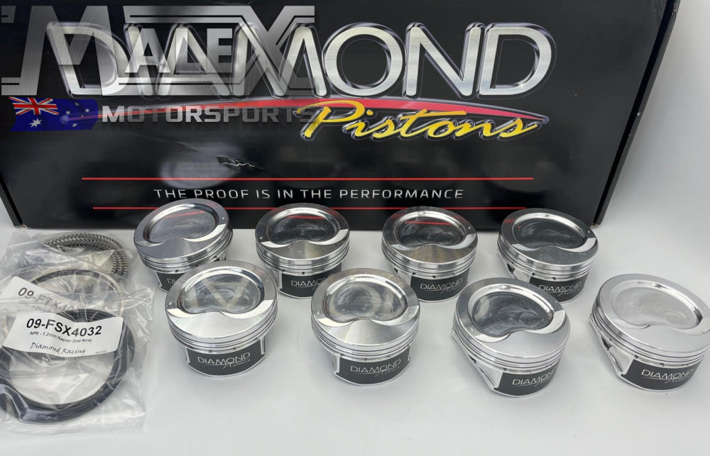 This Diamond forged piston set is ideal for 6.0 LS blocks with a standard stroke running boost. With 68cc (l98 ls3) heads the compression ratio will be approx 9.2:1. (Machining and Head gasket thickness, head cc and or changing other components may alter compression ratio.)