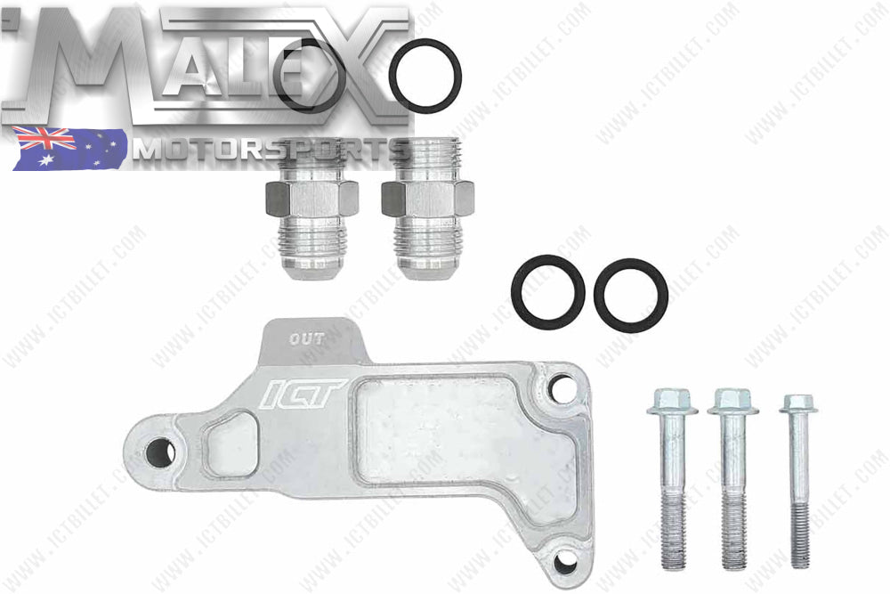 Package includes: oil pan adapter. O-rings, -10AN fittings, and mounting hardware